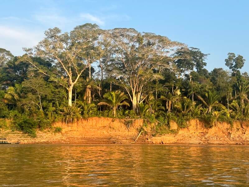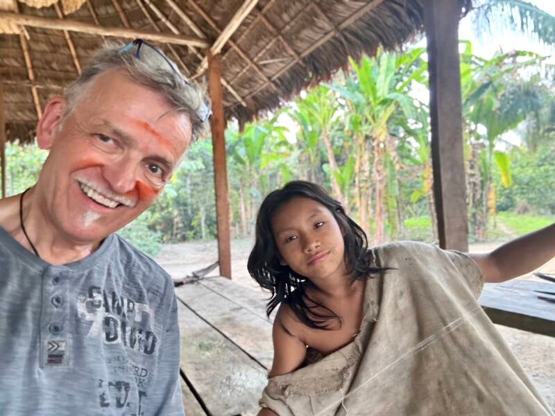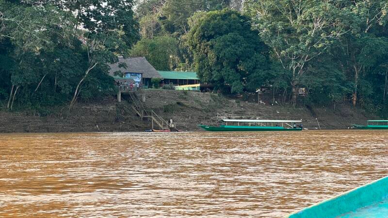Von Cusco aus fliegen wir eine Stunde nach Puerto Maldonado. Eine Stadt mit einem völlig anderen Gesicht. Die tropische Hitze von 30 Grad lässt sich noch ertragen. Die Luftfeuchtigkeit ist relativ. Von der Stadt aus fahren wir mit dem Boot über den Fluß mit dem schönen Namen „Madre de Dios“, eine gelbe Lehmbrühe, aber sicher an die 100 Meter breit. Das flache Boot mit dem Außenbootmotor bringt uns in unsere Lodge mitten in der Selva, dem Regenwald.