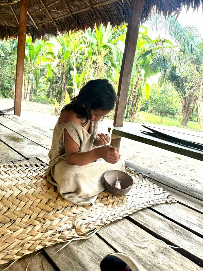 Der erste Weg führt zu der nativen Familie. Nativ, nicht indigen, weil diese Gruppen den Kontakt zur Gesellschaft in Grenzen zulassen, ohne eigene Riten und Bräuche aufzugeben. Aus dieser Familie stammt zB der Schamane, der die nativen Familien hier in der Gegend betreut. Mit dem Geld, das sie verdienen, gehen sie im Ort einkaufen und vermeiden nicht den Kontakt mit Fremden. Sie tragen ihre Kleidung , leben ihre Körperlichkeit, strahlen eine Natürlichkeit aus, die ansteckend ist, sprechen ihre eigene Sprache Machingenka. Sie leben von der Jagd (wir sehen die Naturbögen mit einer starken Spannkraft und ihre Pfeile,) erlegen die Capybares, eine ca 60 kg schwere Meerschweinchenart (hässliche Wasserschweine), leben von den Früchten der Bäume (vielfältig und lecker).