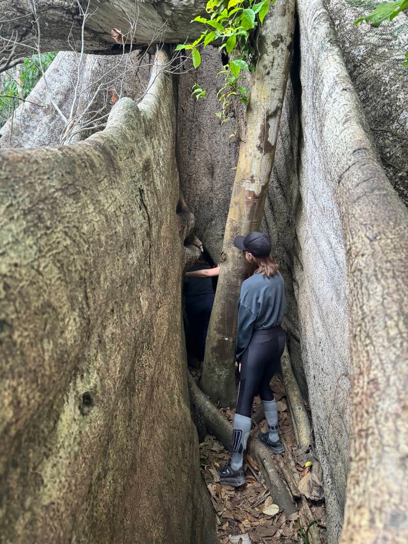 Luis beschreibt den „Killer-tree“, den Killerbaum. Er umwickelt andere Bäume mit seinen lianengleichen Ästen, erstickt ihn irgendwann und wächst um ihn herum. Innen stirbt der alte Baum ab, sodaß ein Hohlraum entsteht. Durch diesen Hohlraum können wir von hinten nach vorn durch diesen Baum hindurchklettern.