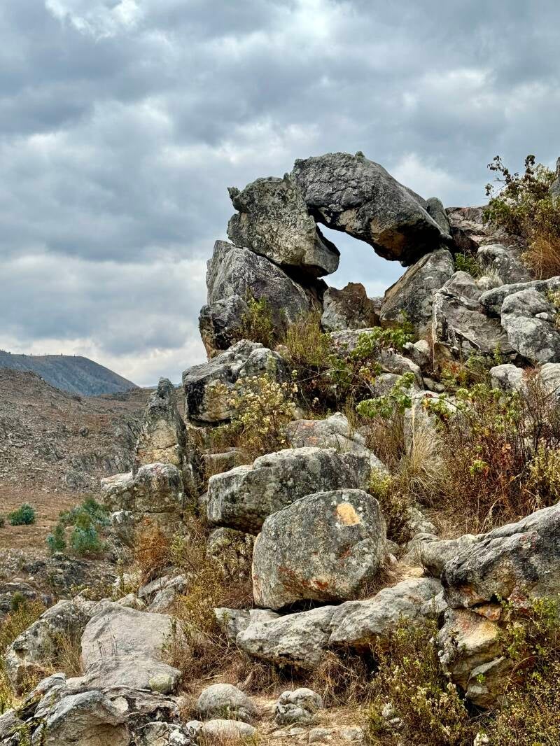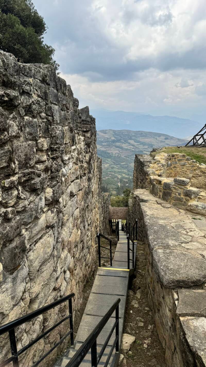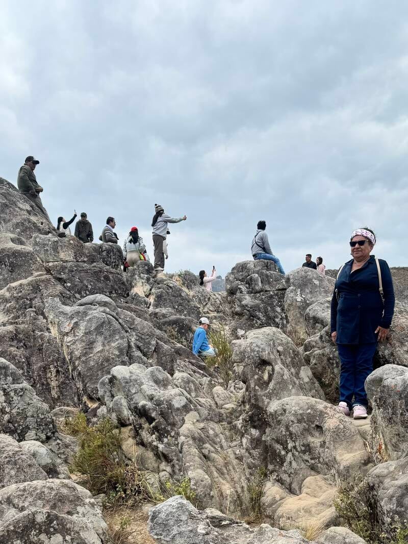 Eine beeindruckende Geschichte verbindet sich mit Kuélap, die ich hier nicht ausführen will. Im Vergleich zu Machu Pichu ist die Umgebung zwar schluchtenreich und auch eindrucksvoll, aber hatte auf mich nicht eine so intensive Ausstrahlung. (Vielleicht auch, weil es trübes Wetter war?) Das geht manchen Reiseführerschreibern offensichtlich anders. Sie sprechen von einer mystischen Atmosphäre. Ich dachte, man sollte erst einmal Kuélap richtig aufräumen und den Rasen mähen😅. Vielleicht hängt die Unordnung aber auch damit zusammen, dass sich auf diesem engen Raum 500 Rundhütten eng aneinandergeschmiegt befanden, deren Reste jetzt einfach unübersichtlich herumliegen. Das kann natürlich nicht so großzügig und aufgeräumt wirken wie in Machu Pichu.