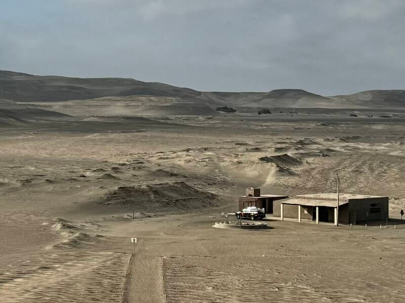 Die Chinesen haben den ganzen Ort MARCONA gekauft inkl. Strand und betreiben hier eine Mine (Erz, Kupfer). Marcona ist ein Ort voller Arbeiterunterkünfte und hat wenig eigenes Flair. Und zu allem haben die Chinesen eben auch ihren Windpark an den Strand gestellt. Warum die Peruaner sich das alles aus der Hand nehmen lassen…? Aber wir Deutschen verkaufen ja auch den halben Hamburger Hafen an China.