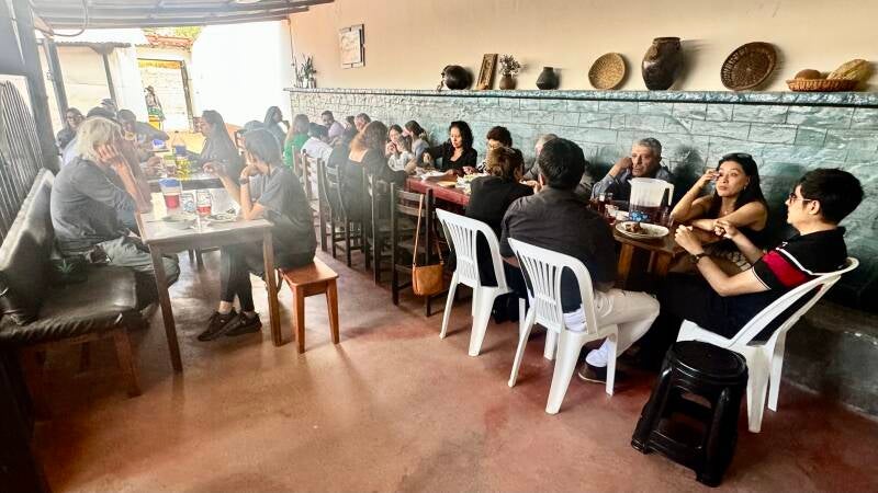 Wichtiger scheint das anschließende Essen im Kreis der Großfamilie zu sein. Evelyns Familie ist aus ganz Peru angereist. Wir sind herzlich eingeladen, im Restaurant mit ihnen zu essen und anzustoßen. Eine herzliche Stimmung. Wir fühlen uns aufgenommen. Paulo, der 28 jährige Sohn von Evelyn, der in Lima Handyspiele entwickelt, ist ein aufgeschlossener sensibler Gesprächspartner. Er nimmt sich Zeit für uns und hat mit Myriam viele Themen, die sich überschneiden.