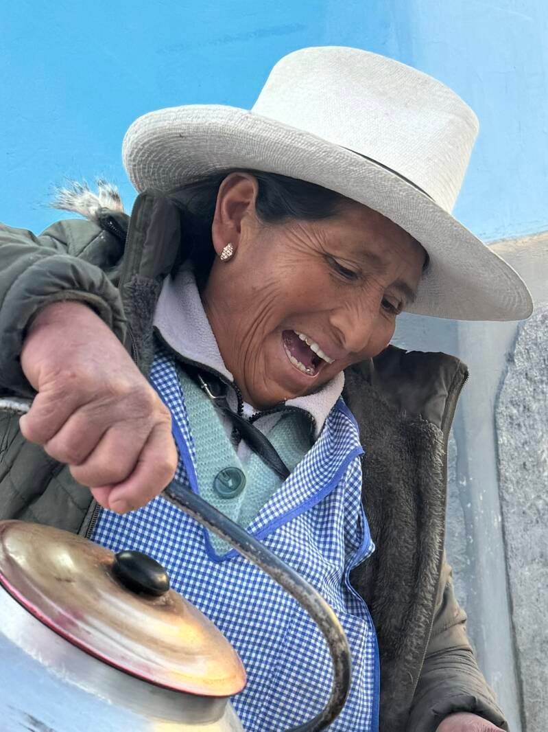 Sie steht ab 5:00 morgens an der Straße und mischt einen warmen Ponchetee. Es steht aber auch Rum und Pisco auf dem Tisch. Mich schaut ein freundliches Gesicht an mit einen sympathischen Lachen. Ich bekomme einen „Ponche Aleman“, wie er hier offiziell heißt: mit einem Schuß Pisco (spezieller peruanischer Obstler). Und wenn das Glas drei viertel getrunken ist, wird pisco nachgeschenkt…
