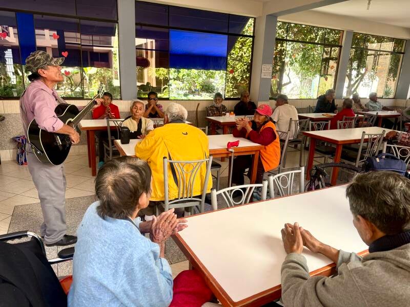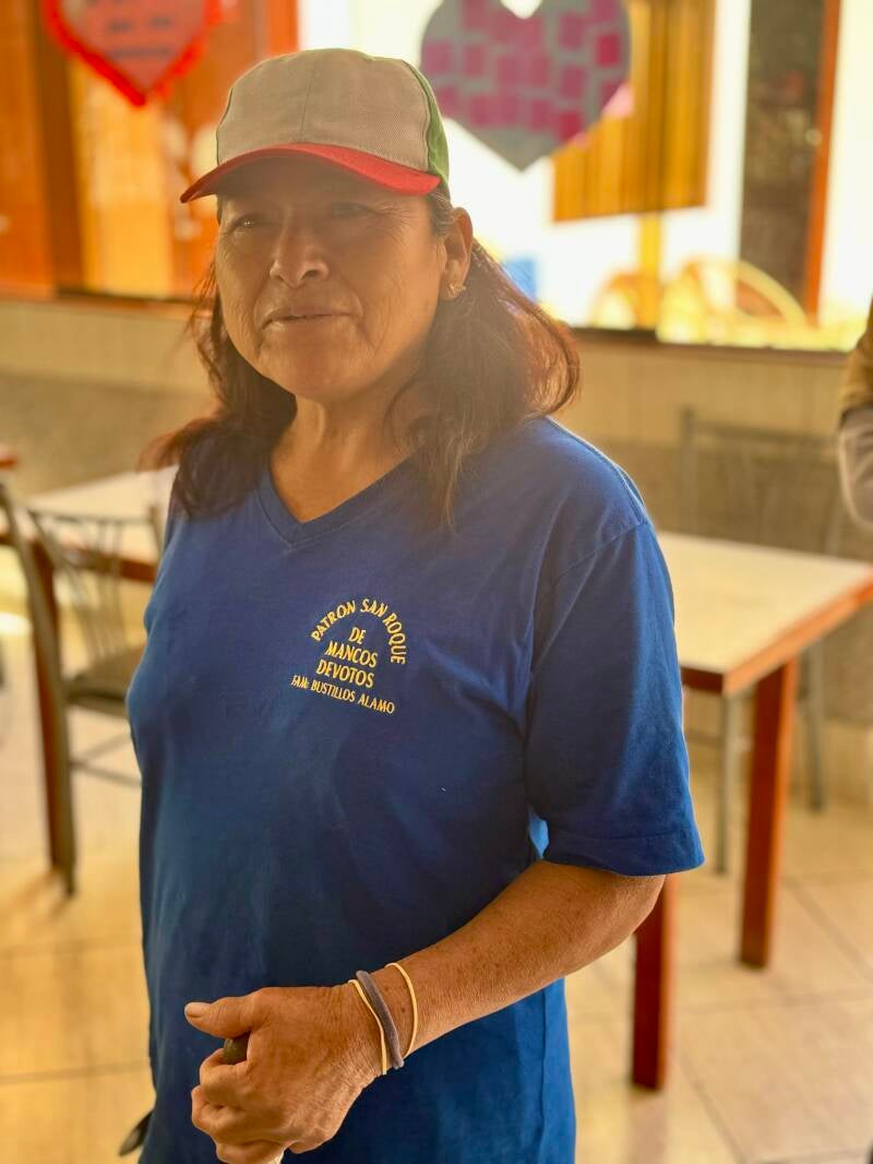 Am Samstag, 20.7.24, besuche ich mit Myriam den Comedor. Die Senjoren +bertragen ihre Sympathie sofort auf sie und kommen ins Gespräch. Es ist wieder umwerfend, mit welcher Freundlichkeit und Nähe sie uns begegnen. Wir lernen noch Aida kennen, die Myriam ihre Lebens- und Leidensgeschichte erzählt: dass sie Epileptikerin sei und jeden Augenblick einen Anfall bekommen könne. Da asei schon oft passiert, sodaß die Leute sich daran gewöhnt haben, einen Krankenwagen zu rufen. Sie ist helle und fragt, was so ein Flug von Alemania nach Peru kostet. Und wir fühlen uns peinlich berührt, diese hohe Summe nennen zu müssen. Aber außer Staunen kommt keine Bewertung oder gar Verurteilung.
